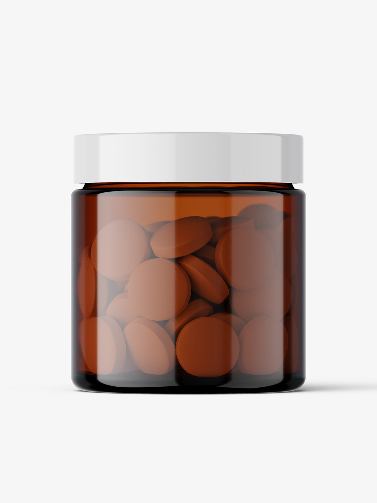 Round tablets amber jar mockup