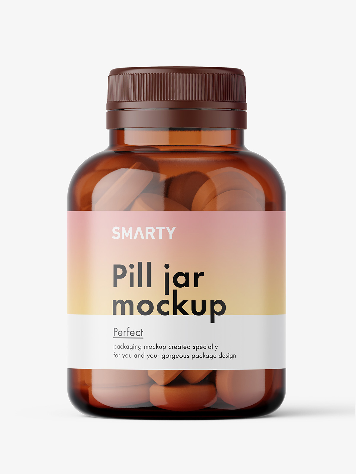 Jar with medicine mockup. Easy to use and customize. Mockup is preapred in high resolution. You can adjust label size and shape.