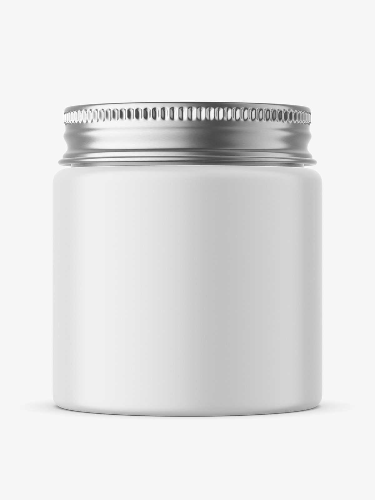 Regular glossy jar with elegant silver lid. May used as packaging in food, cosmetic and pharmacy industry. Mockup prepared with an option for an easy change of the cap color.
