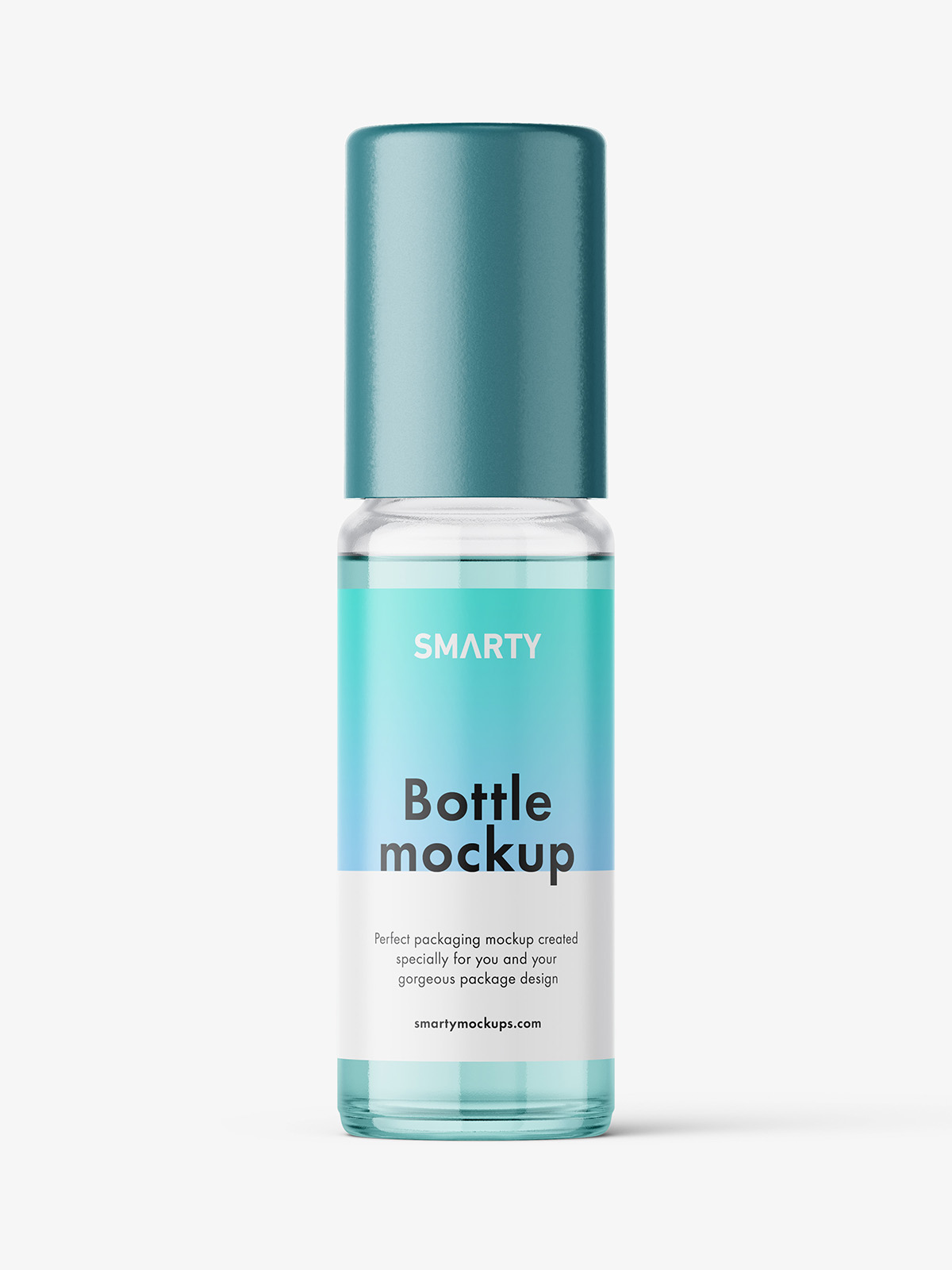 Simple and clear mockup of small bottle. It can be used as a visualisation for cosmetic or pharmacy products. You can choose from several cap coatings, turn on and off shadows and paste your design.