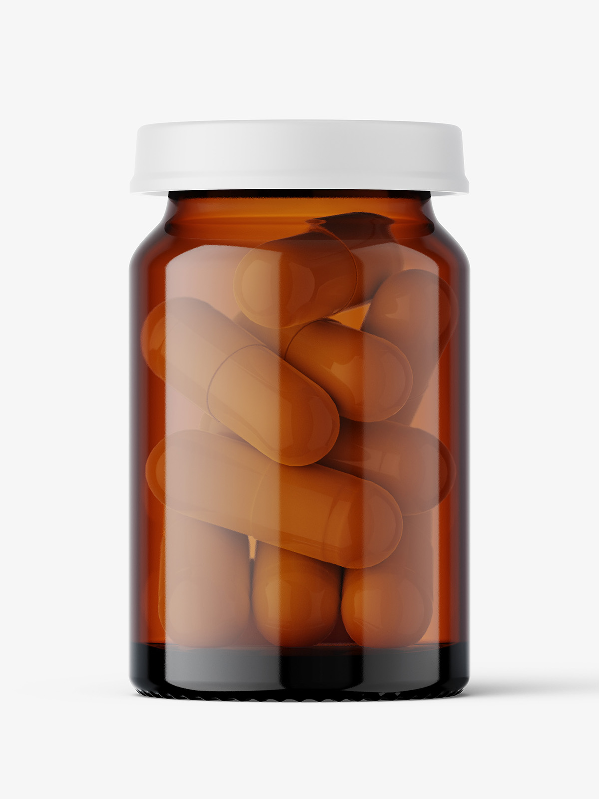 Jar with medicine mockup. It is easy to use and customize. Mockup is preapred in high resolution. You can adjust label size and shape.