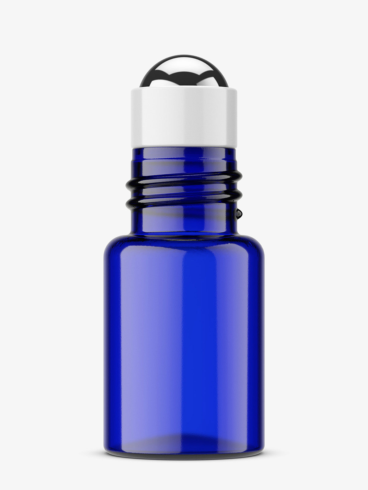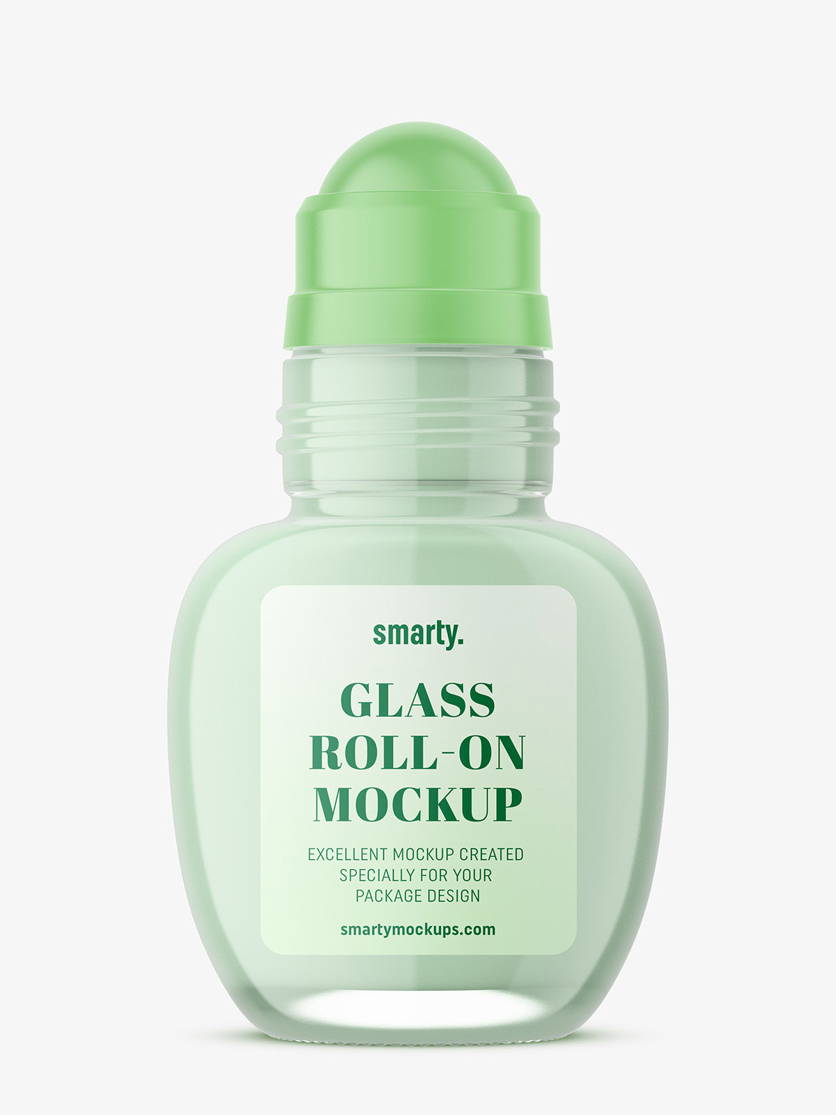 Small roll-on bottle mockup prepared with ability to paste your project, set ball and ring color. Opaque cap can be turned on and off.