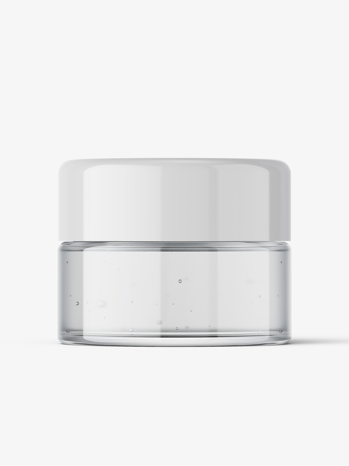 Small realistic glass jar mockup. Such jarmay be used for presenting cosmetic or pharmaceutical bottles.