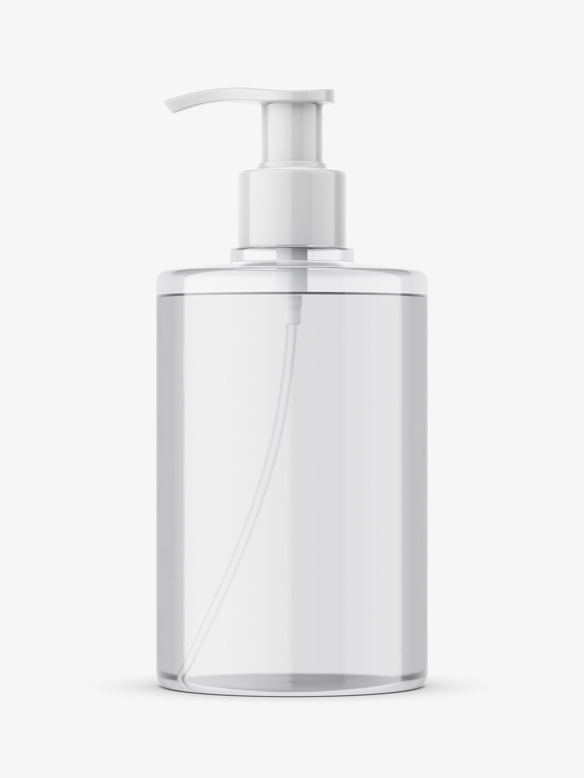 Universal soap bottle with pump mockup. Such bottle may be used as container for gels, shampoos and others. Mockup been properly prepared, so it`s easy to change bottle and cap color.