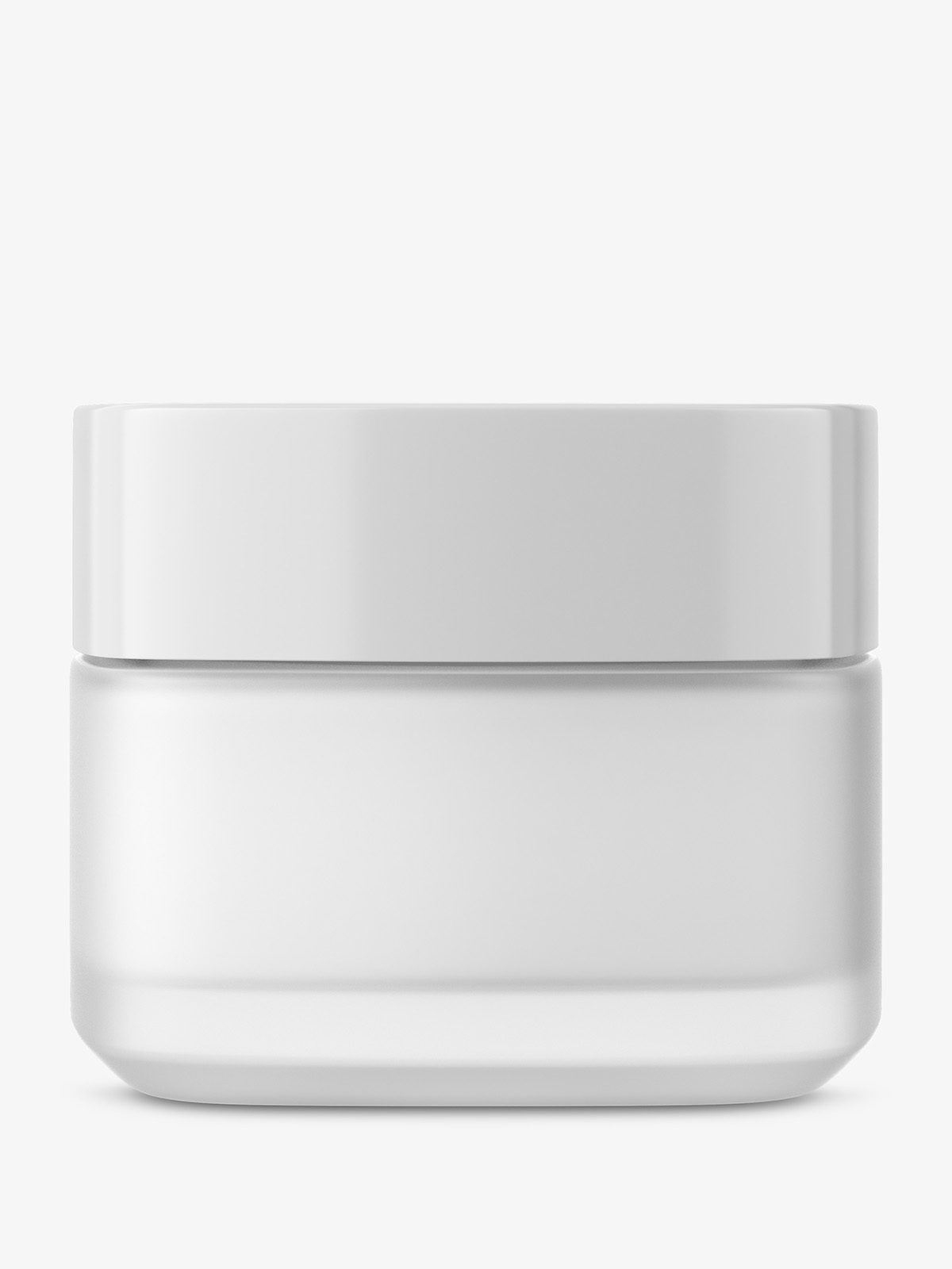 Square glass cosmetic jar for various creams, gels or other beauty products. Mockup is prepared with plastic and metallic cap (metal can be selectively use).