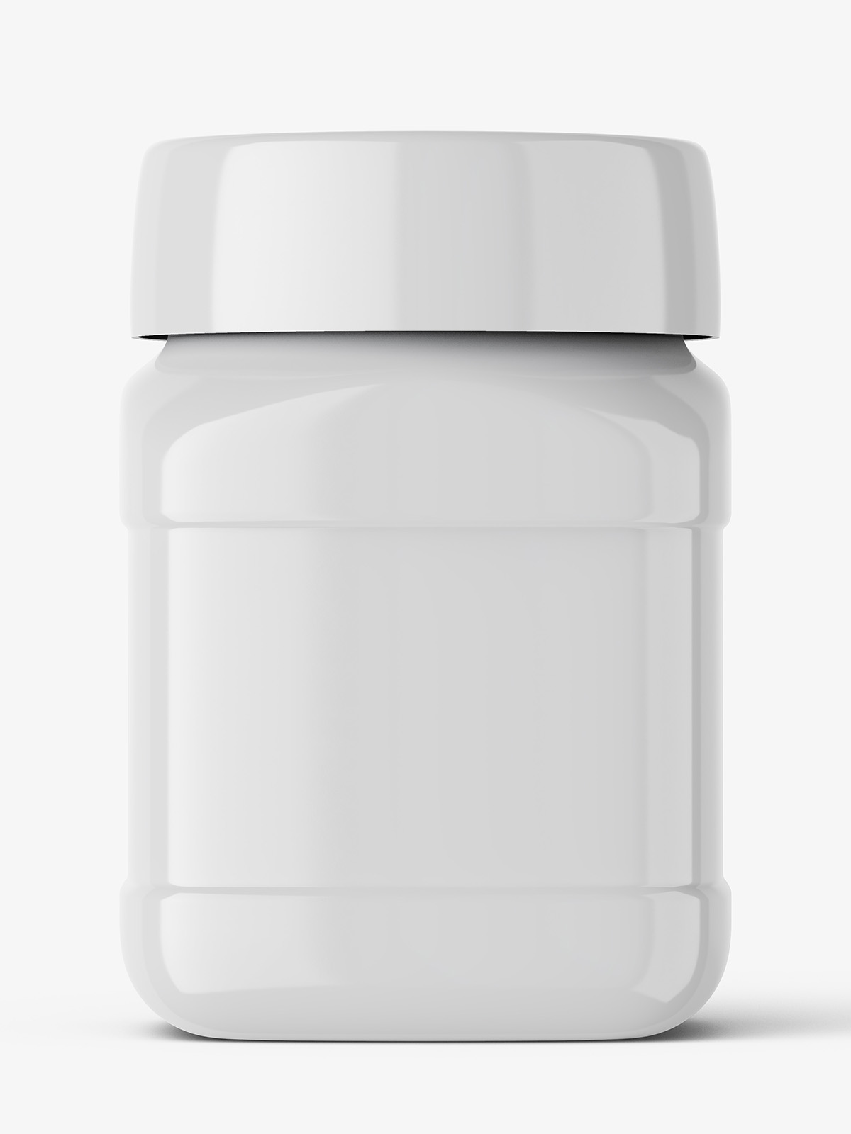 Square jar mockup prepared in high resolution. It is prepared with layer for label, altough project can be pasted into entire jar.