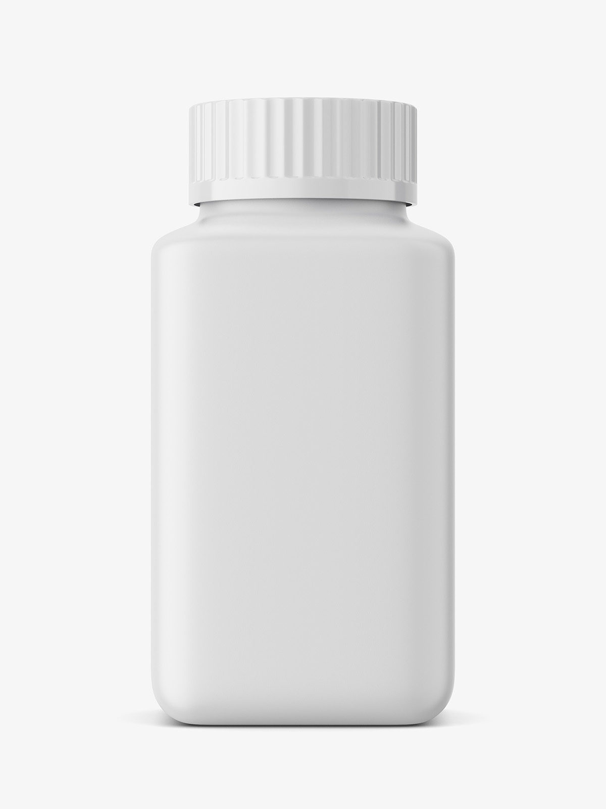 Medical jar, used in the pharmaceutical industry as the package for tablets, pills, or capsules. The mockup was prepared so as to allow for adding any color to the cap and the jar itself.