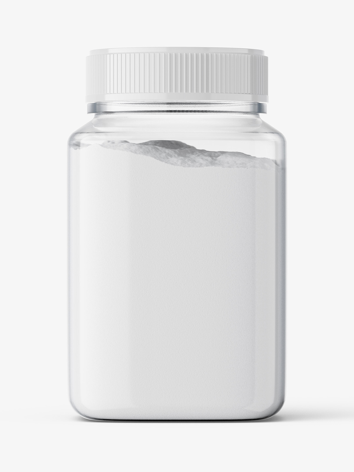 Square jar with medicine mockup. It is easy to use and customize. Mockup is preapred in high resolution. You can adjust label size and shape.