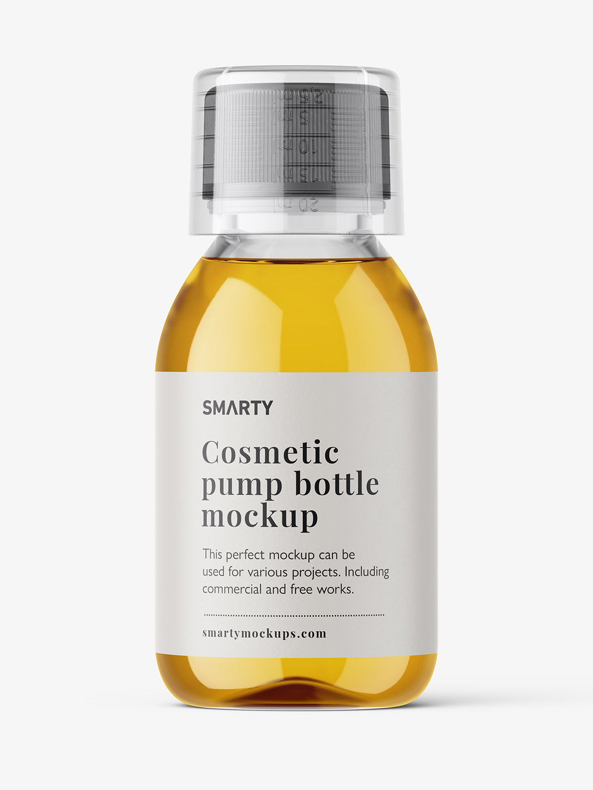 A realistic and easy-to-use syrup bottle mockup. You can paste a label of any shape and size, and you can change the color of each bottle element.