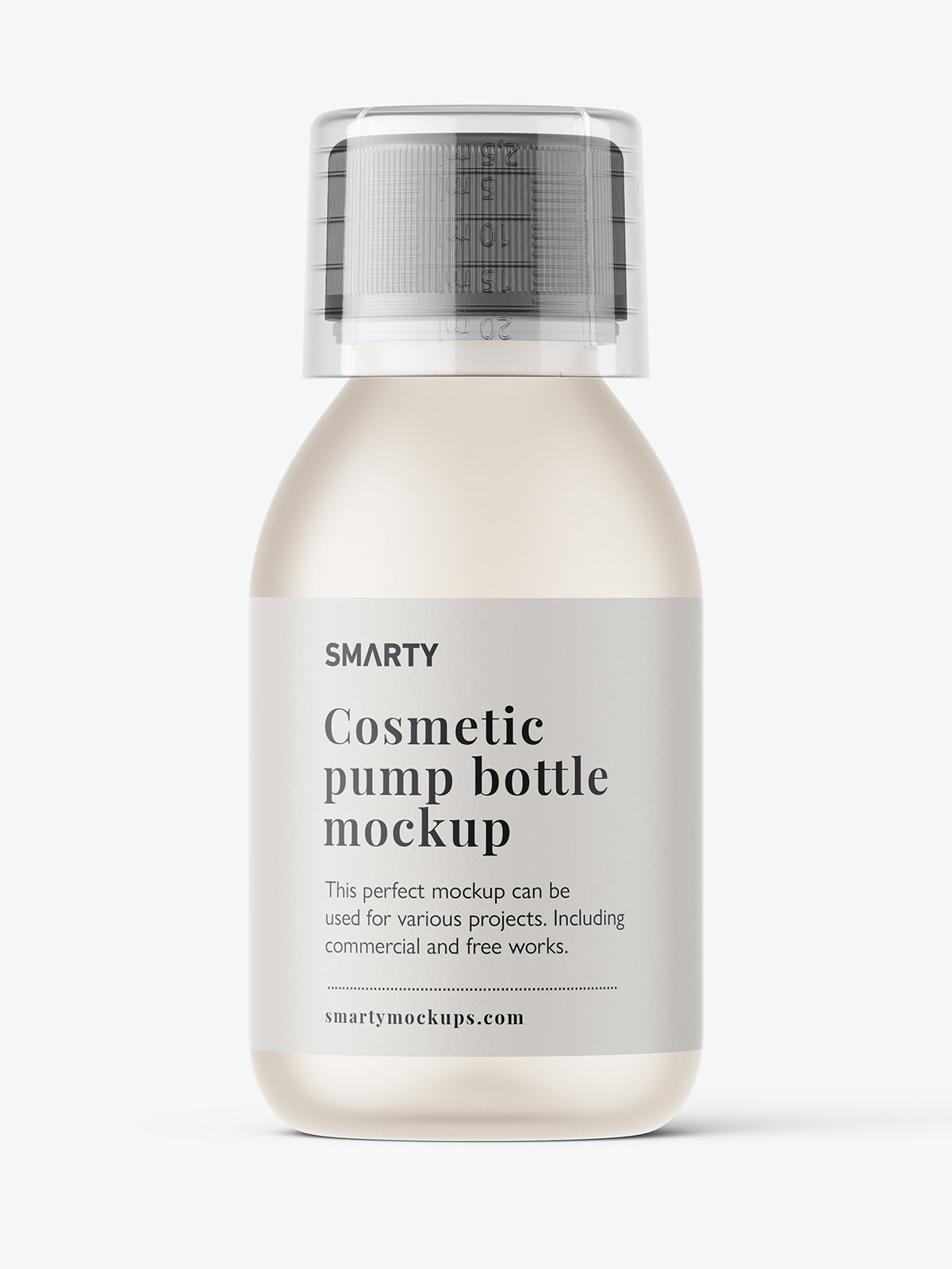 A realistic and easy-to-use syrup bottle mockup. You can paste a label of any shape and size, and you can change the color of each bottle element.