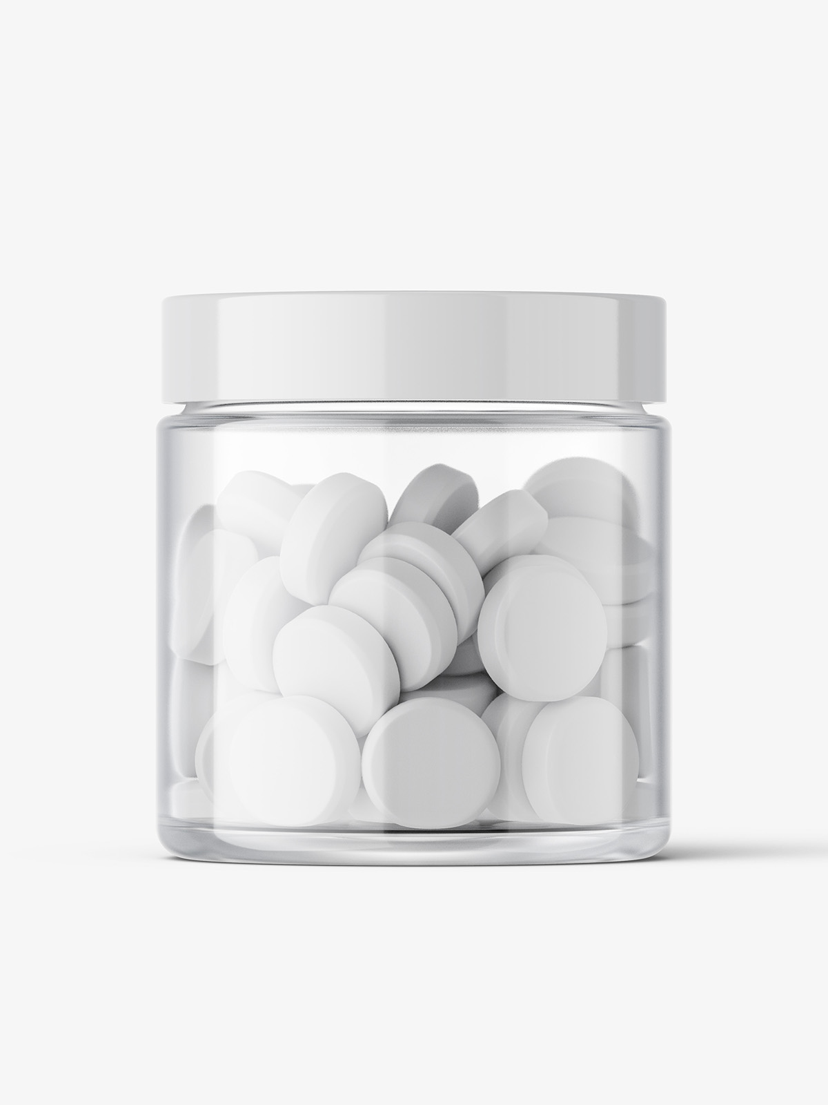 Jar with medicine mockup. Easy to use and customize. Mockup is preapred in high resolution. You can adjust label size and shape.