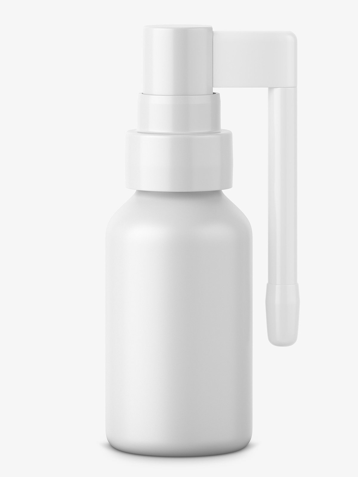 Throat spray bottle used as packaging for medical and pharmacy aerosols. Mockup prepared with an option for an easy change of the cap color.