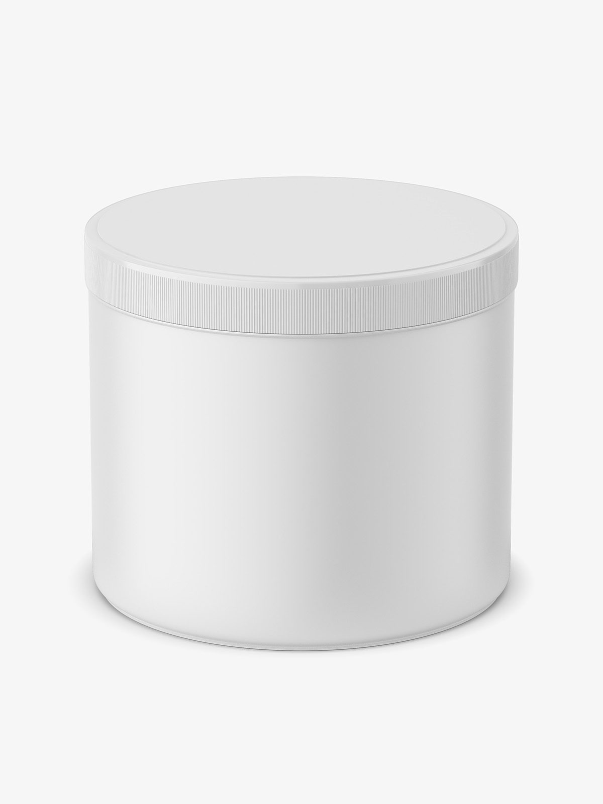 Universal plastic jar, used in the pharmaceutical and food industries. The mockup was prepared so as to allow for adding any color to the cap.