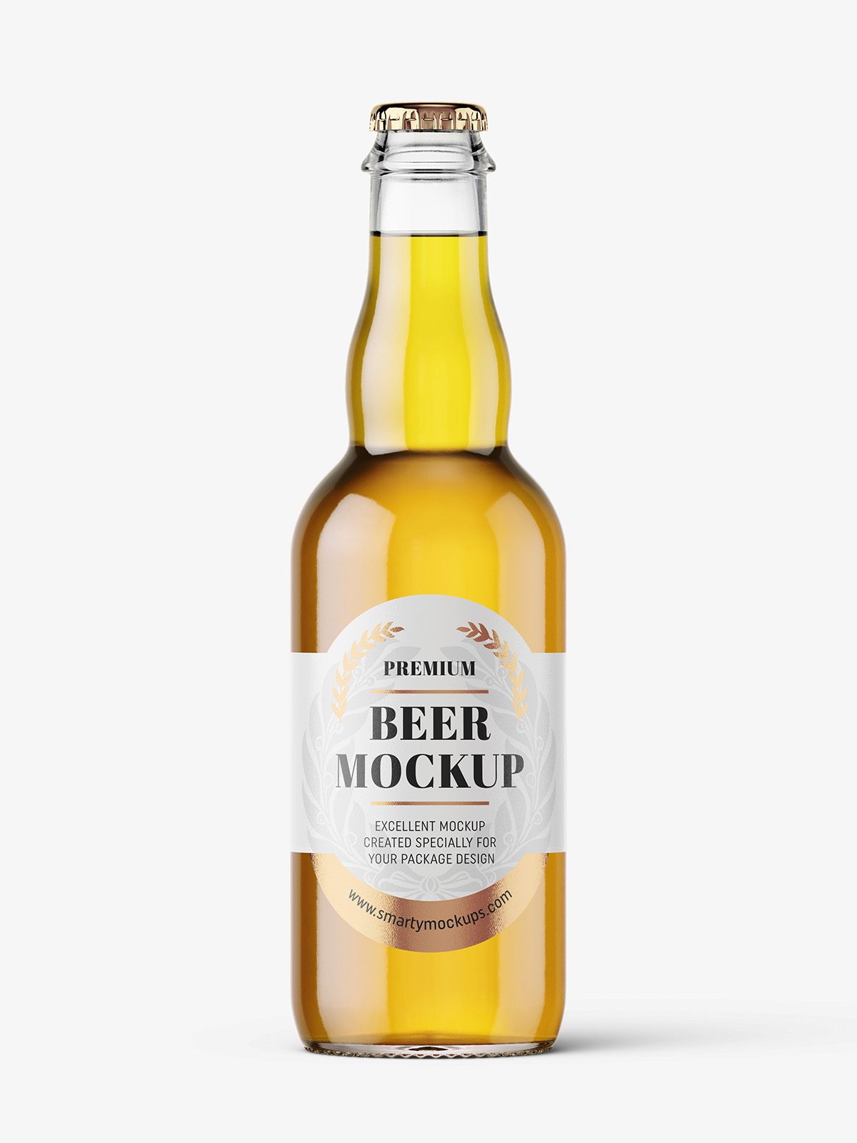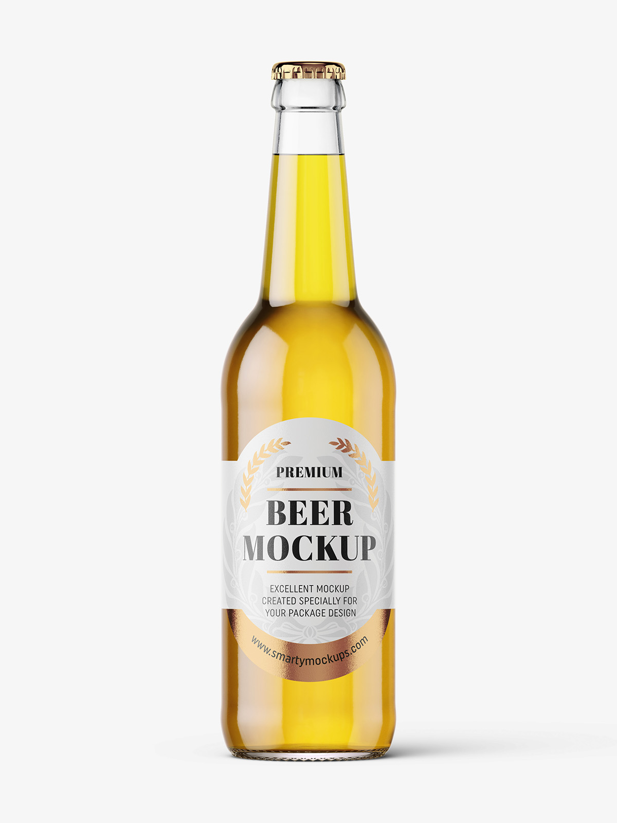 Beer bottle mockup prepared to edit paper and metallic label. Every element has it’s own light layer that can be customized.