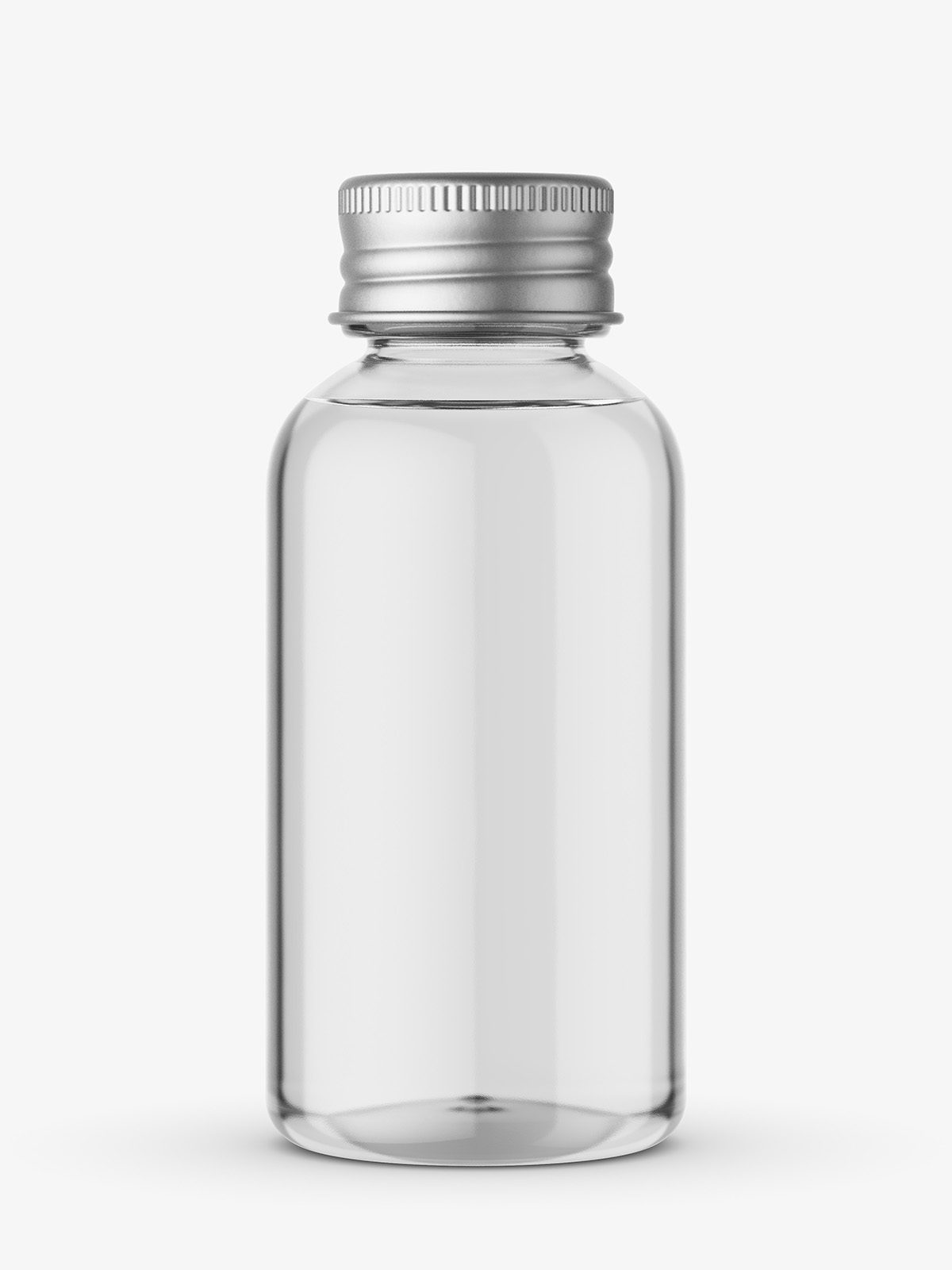 Transparent bottle with silver cap mockup. Prepared in high resolution with ability to customize and modify it to your needs.