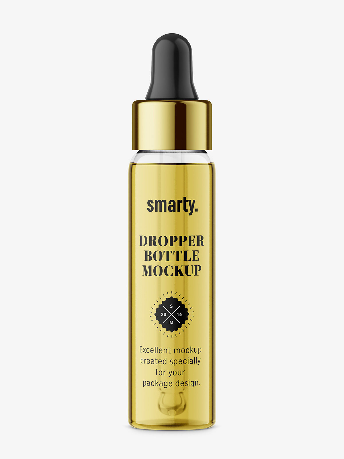Transparent dropper bottle mockup. Made in high resolution, with ability to customize it to your needs. Plastic cap can be turn on and off.