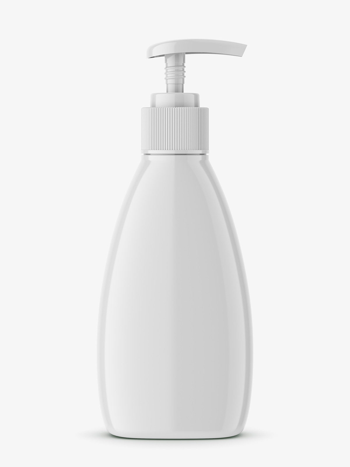 Triangle glossy bottle with pump mockup. Easy to edit and modify. You can change label project as well as pump and bottle color.