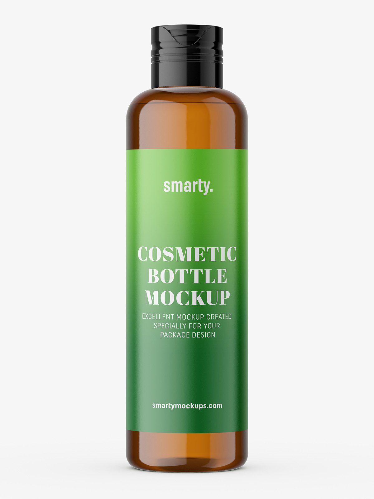 Universal amber bottle mockup. You can paste your own label design and change color of the cap. Mockup is prepared in high resolution.