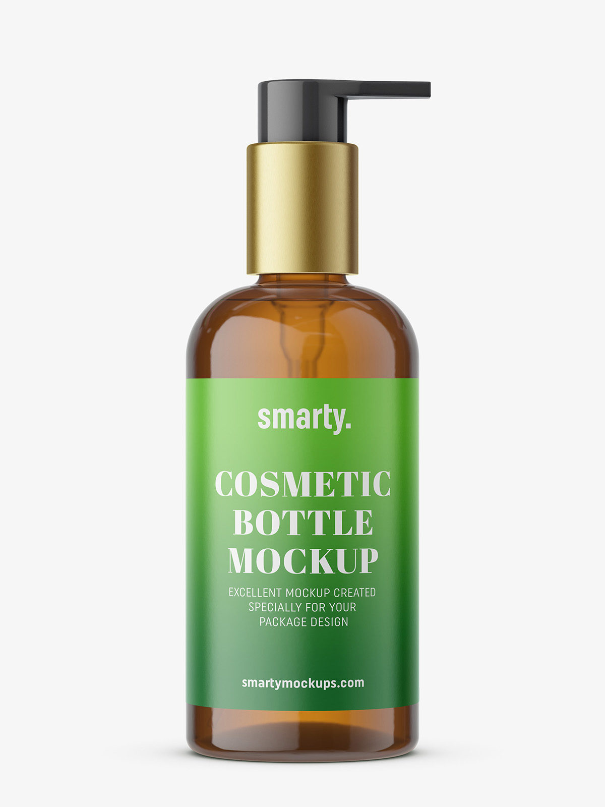 Universal amber bottle with pump mockup. Every element of the mockup can be changed, and you can make any customizations in fast and easy way.