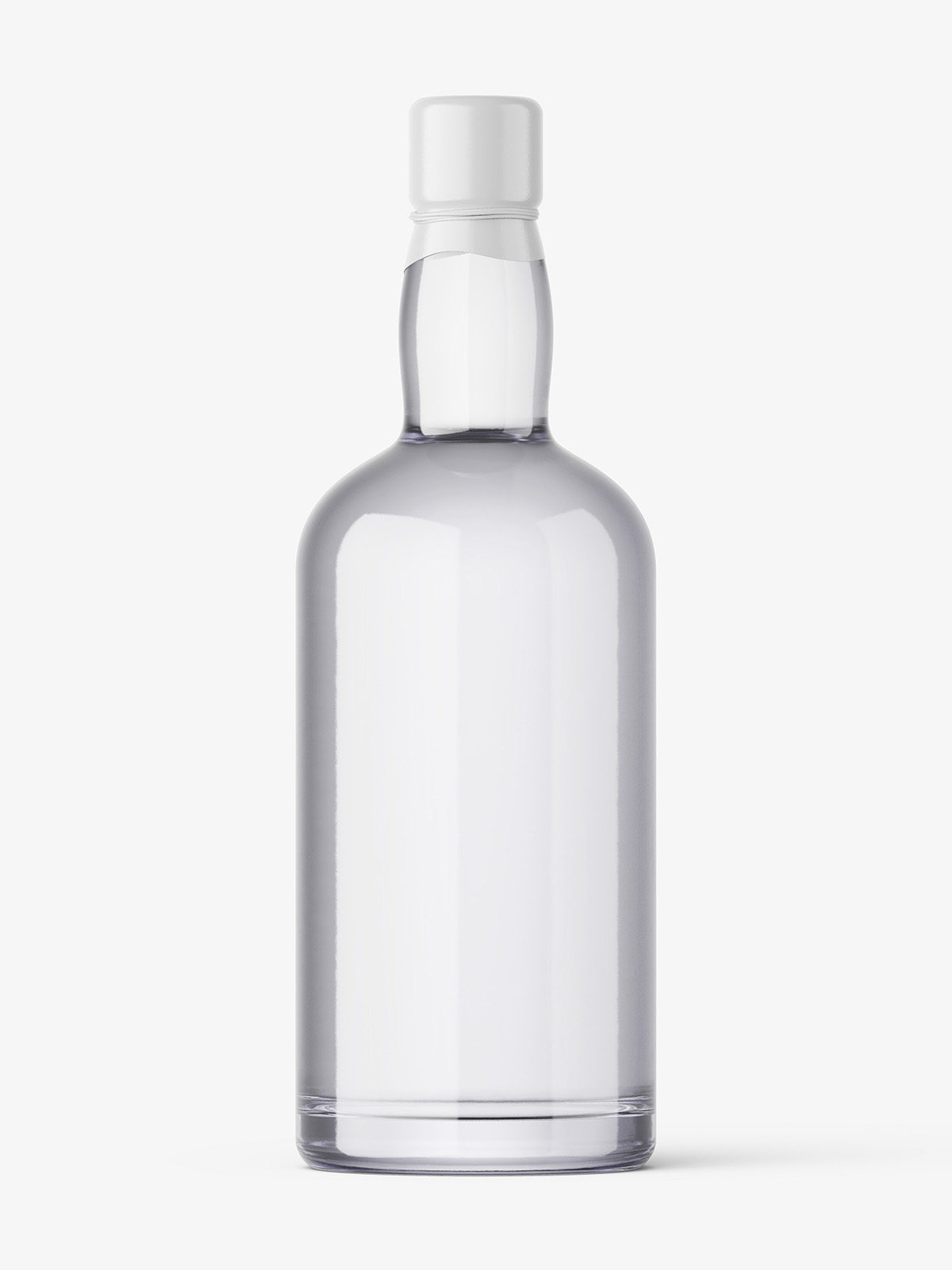 Universal vodka bottle with transparent liquid inside. Such mockup may be use as vodka packaging packshot or other alcohol drinks as well.