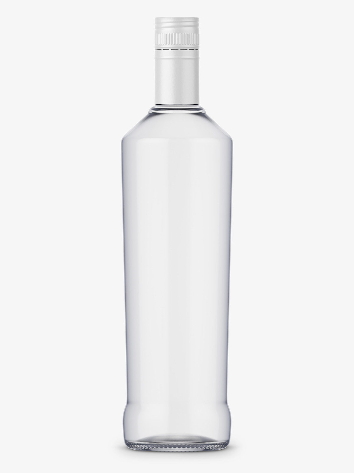 Vodka bottle with trransparent liquid inside. Such mockup may be use as vodka packaging packshot or other alcohol drinks as well.