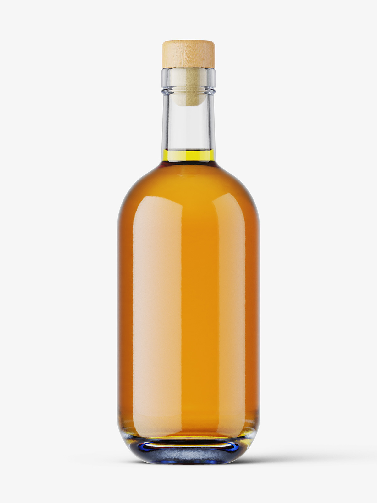 Universal whisky bottle with transparent liquid inside. Such mockup may be use as vodka packaging packshot or other alcohol drinks as well.