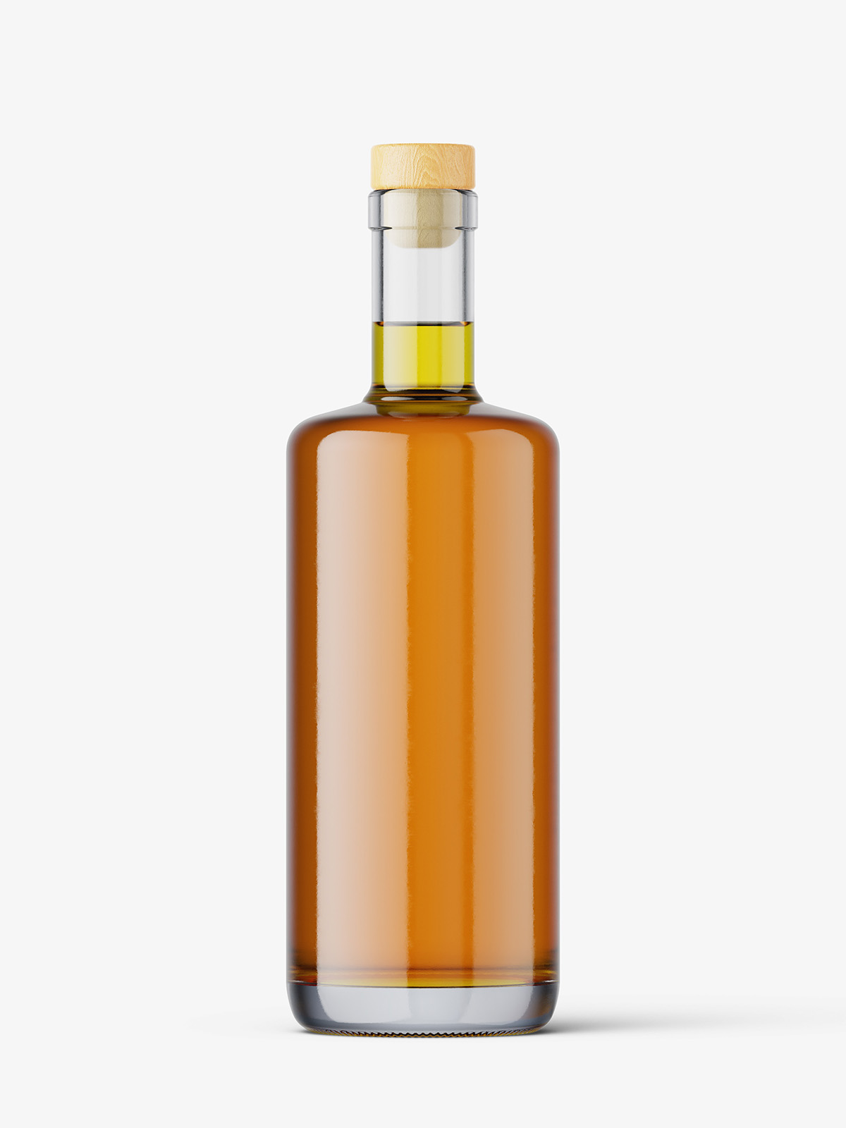 Universal whisky bottle with transparent liquid inside. Such mockup may be use as vodka packaging packshot or other alcohol drinks as well.