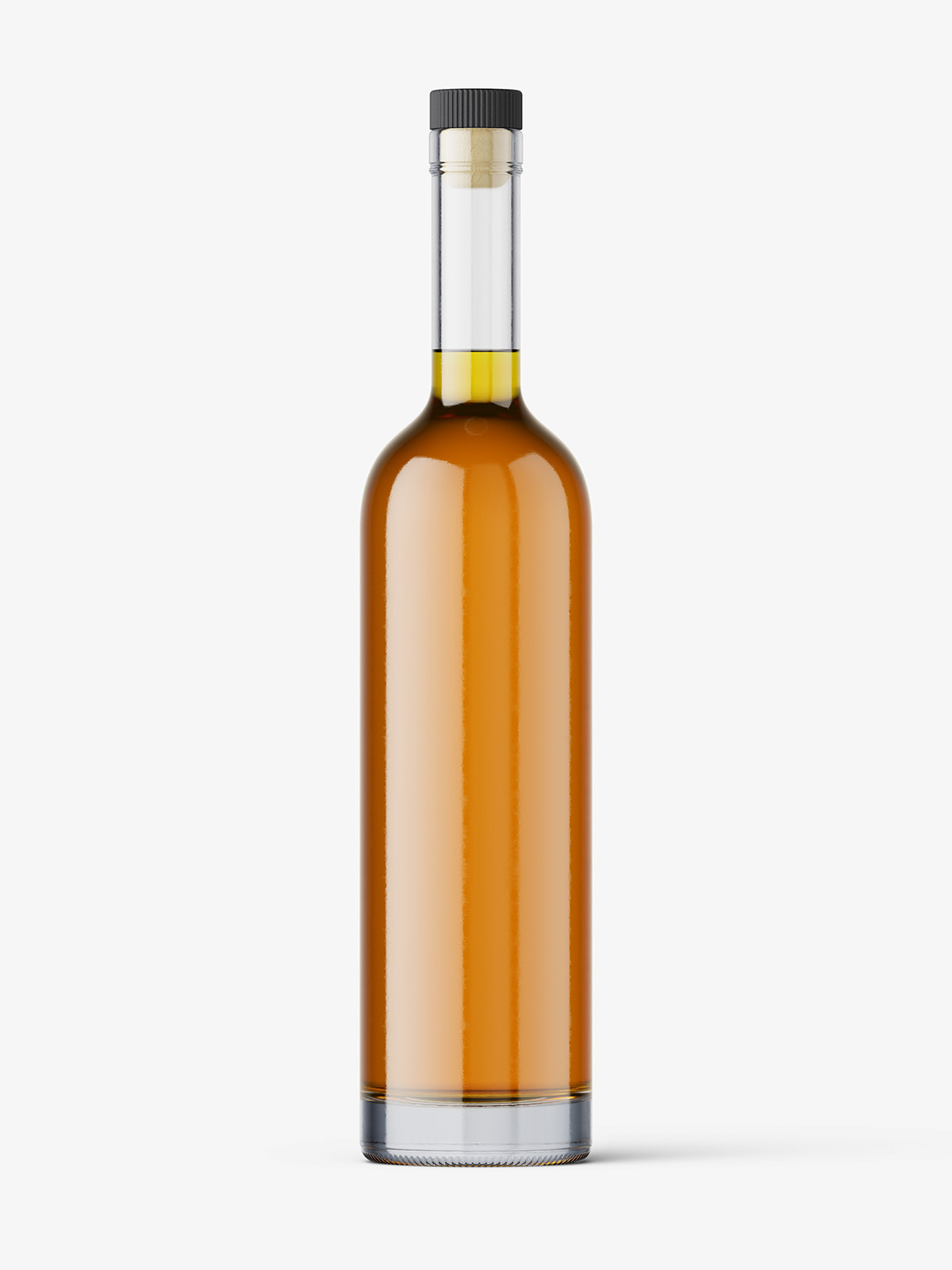 Universal whisky bottle with transparent liquid inside. Such mockup may be use as vodka packaging packshot or other alcohol drinks as well.