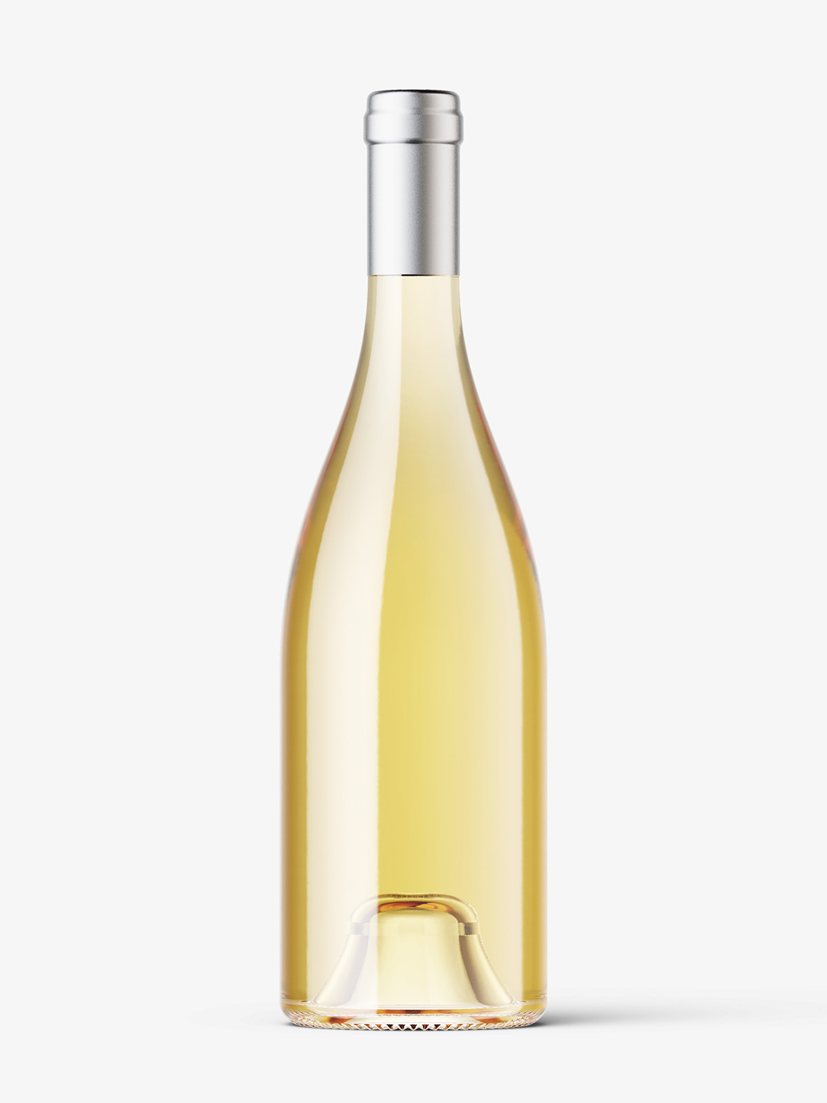 White wine bottle mockup prepared in high resolution. Hot stamping (with customizable color) coating is available for label. Two caps type: paper and metallic screw cap.