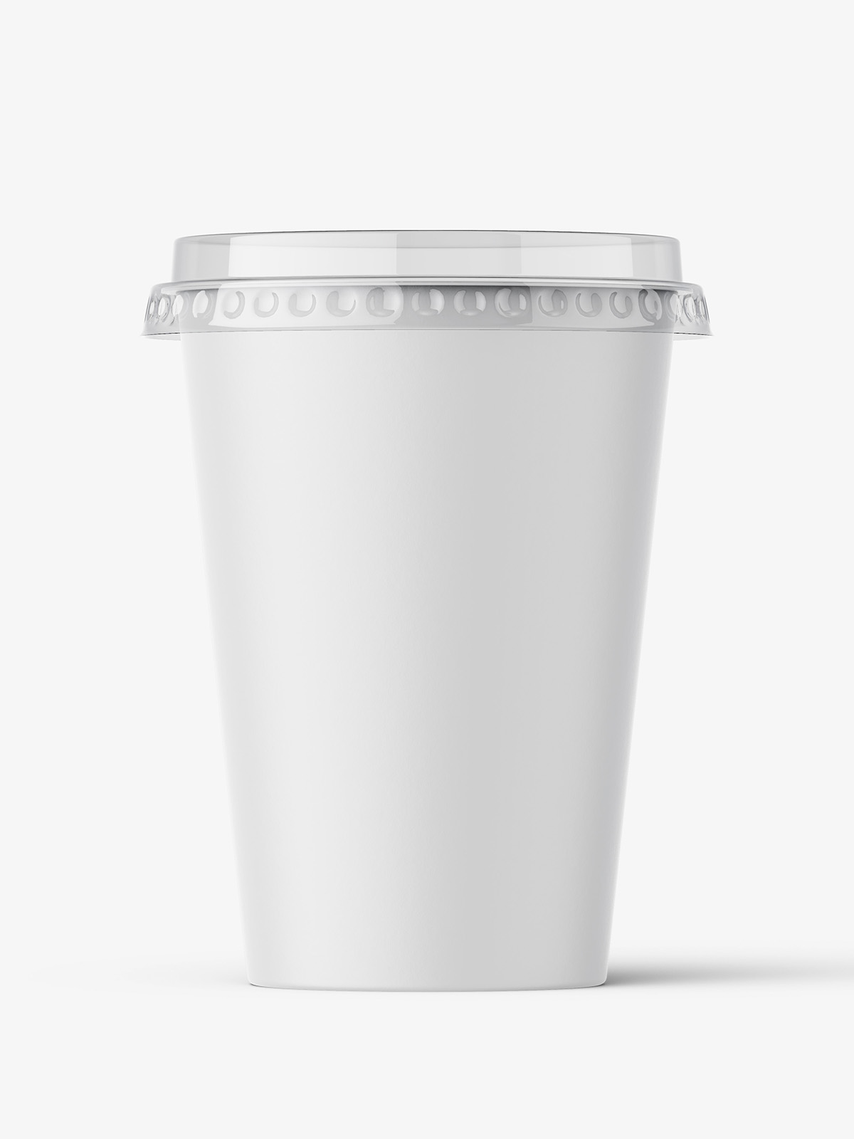 Plastic tub / bucket used as a container for various creams: sour cream, cottage cheese, yoghurt and others. The mockup was prepared for an easy change of packaging color.