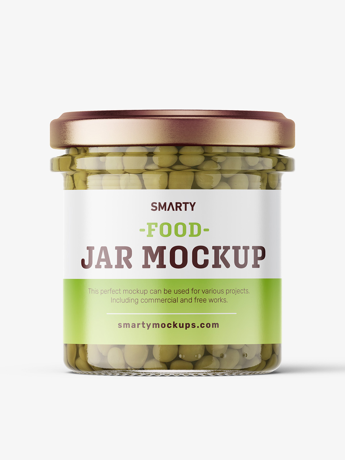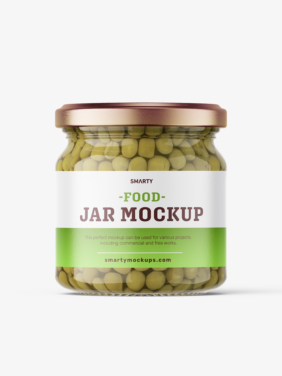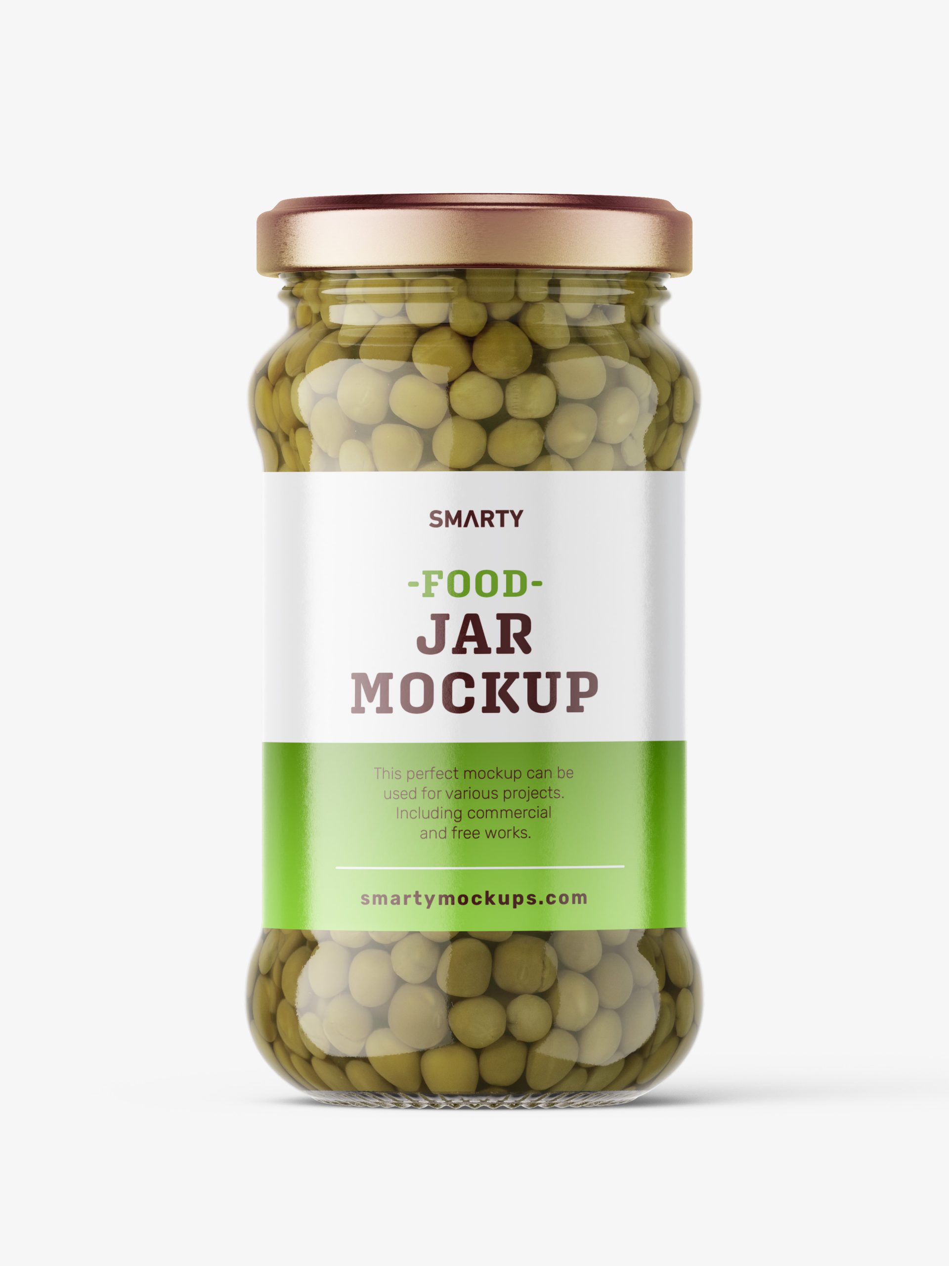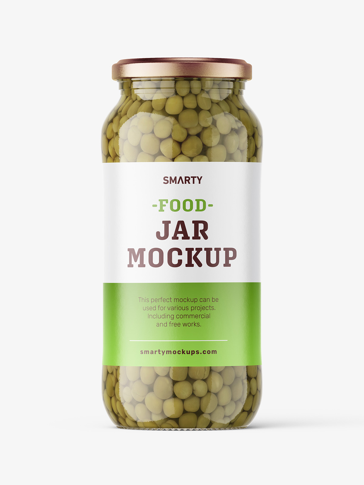 Green pea jar mockups designed for presenting classic preserved vegetables with a clean, natural look. The bright background and clear glass bring out the fresh green color of the peas, helping your label design appear simple, healthy, and ready for everyday food packaging.