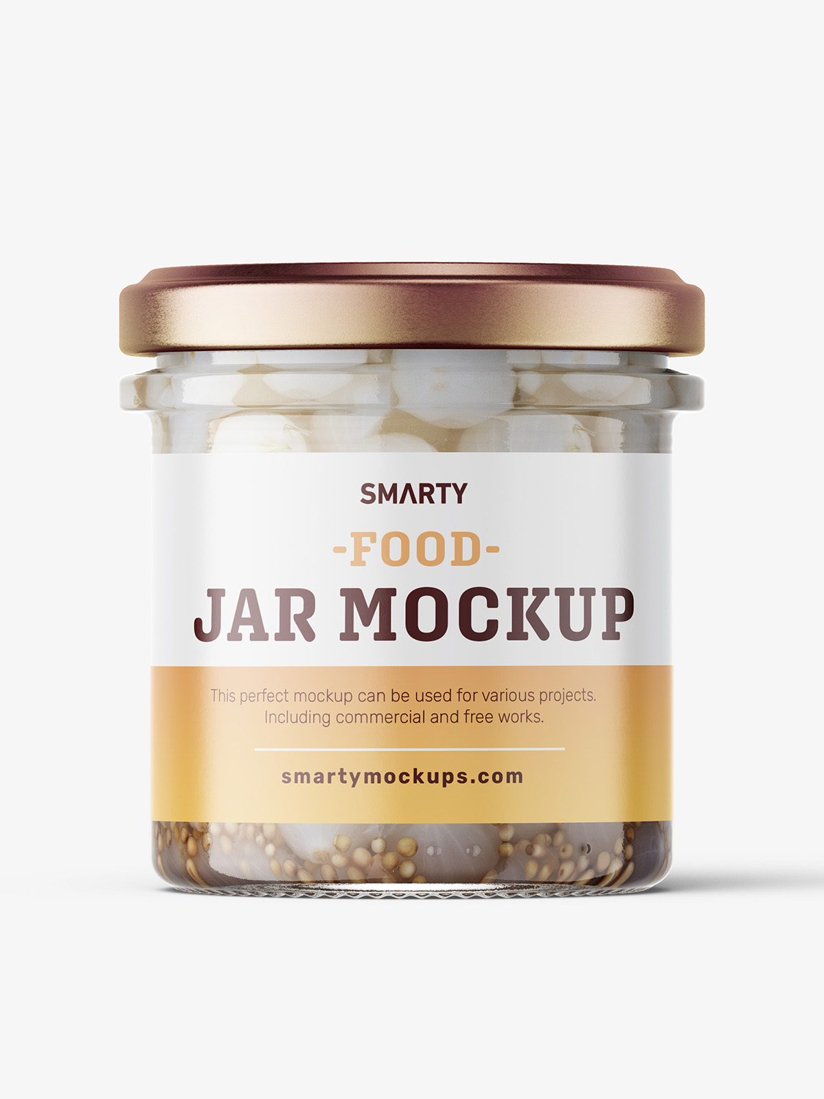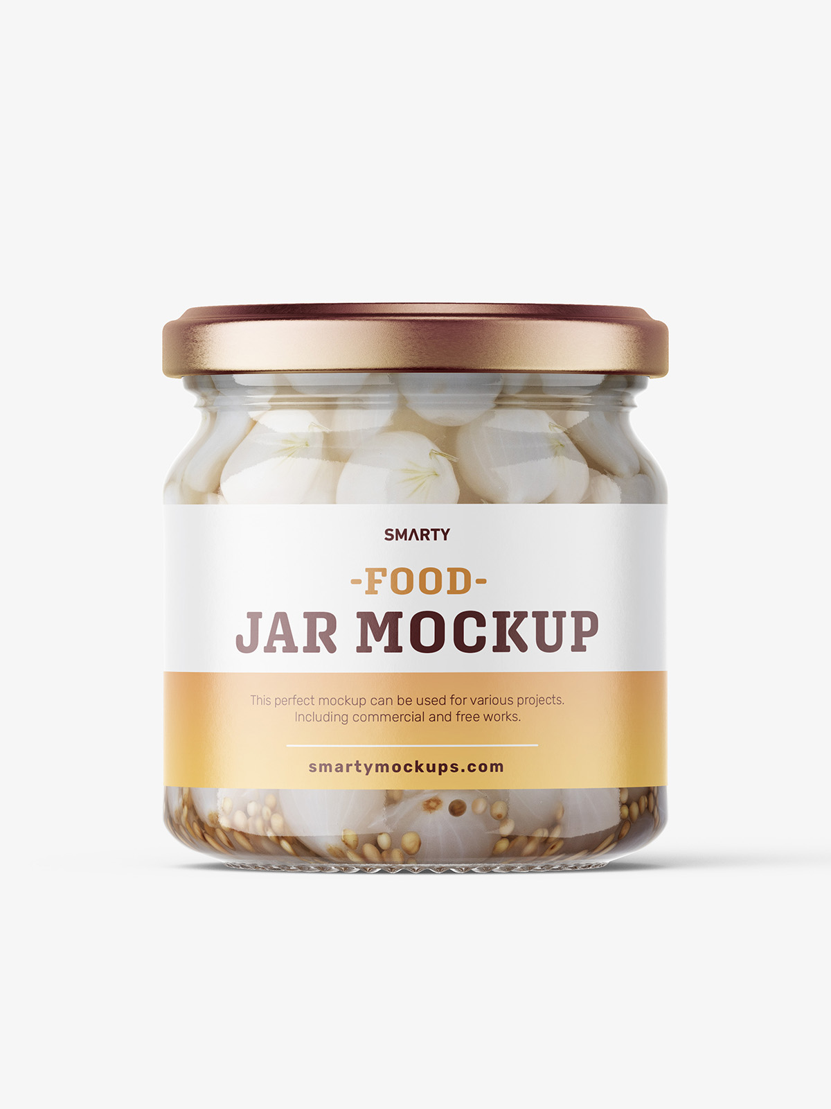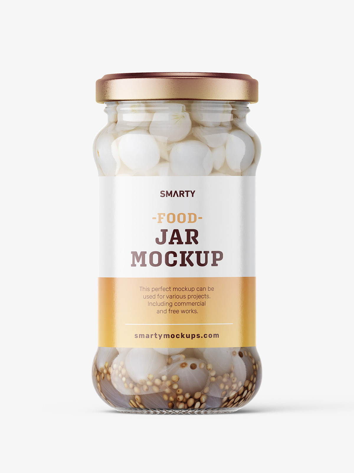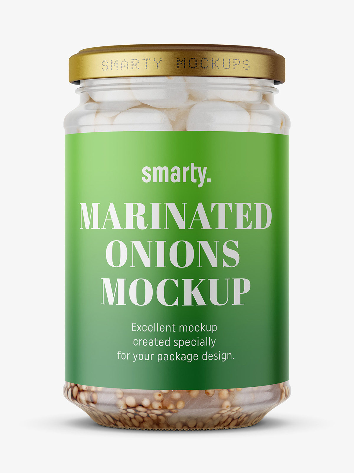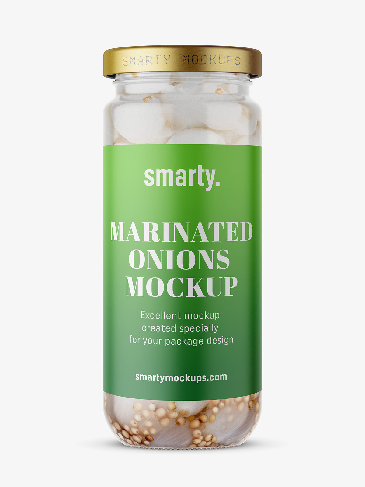 Onions jar mockups designed for presenting pickled or preserved onions with a clean, distinctive look. The bright background and clear glass bring out the color and structure of the slices, helping your label design appear fresh, tangy, and ready for any food-brand packaging.