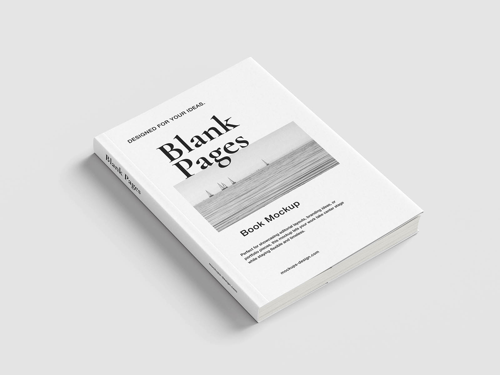 This softcover book mockup features a folded cover with flaps, designed to realistically present editorial and publishing projects. The mockup focuses on the physical structure of a paperback book with extended cover panels, visible spine, and natural page thickness, making it ideal for showcasing book covers, catalogs, reports, or brand publications. With six PSD files included, you can present your design in various states, including closed views, stacked compositions, and open spreads. Smart objects allow quick artwork replacement, helping designers preview how their layouts work across the cover, flaps, and inner pages.