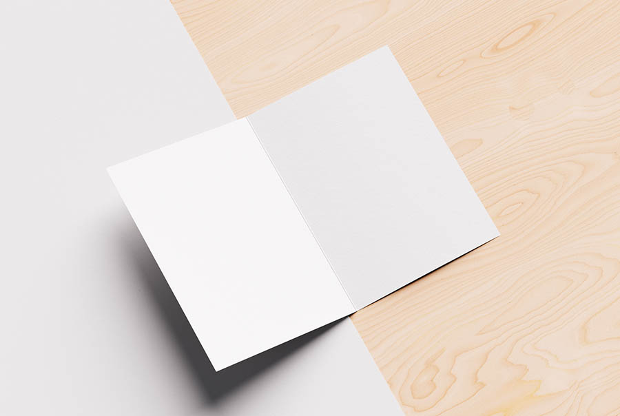Free mockups of bi-fold flyers in A4, A5 and A6 format.